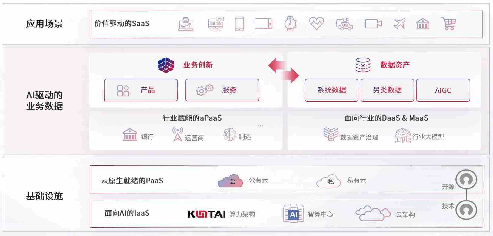 数字时代,,,围绕企业数字化转型的关键要素,,,z6com尊龙凯时数码开创性的提出数云融合战略和技术体系框架,,,,着力在云原生、、、数字原生、、、AI原生和信创产业上架构产品和服务能力,,,为处在不同数字化转型阶段的快消零售、、汽车、、、金融、、、医疗、、政企、、、教育、、运营商等行业客户提供泛在的敏捷IT能力和融合的数据驱动能力,,,构建跨界融合创新的数字业务场景和新业务模式,,助力企业级客户建立面向未来的核心能力和竞争优势,,,全面推动社会的数字化、、、智能化转型升级。。。。