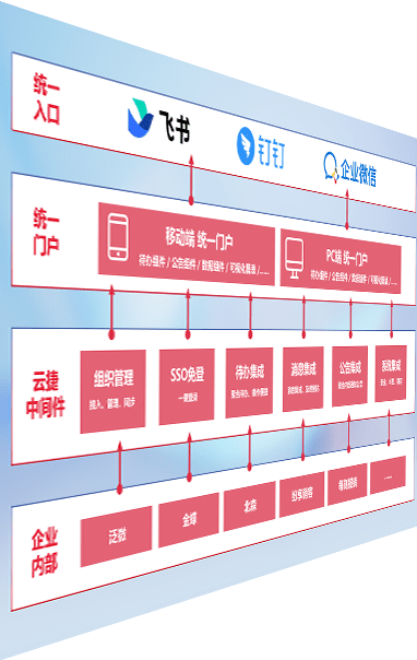 对协作平台提供支持服务,,支持企业应用与协作平台对接,,,包含组织同步、、、消息集成、、待办集成等。。支持目前主流的协作平台:钉钉、、、企微和飞书。。。